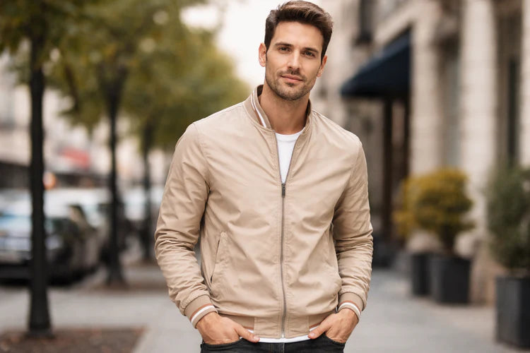 Men's Lightweight Bomber Jacket With Zip Closure And Ribbed Cuffs